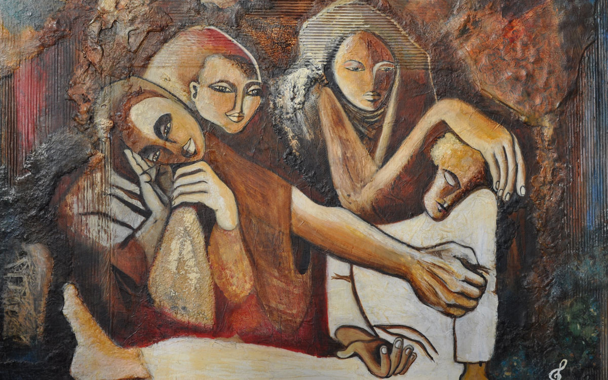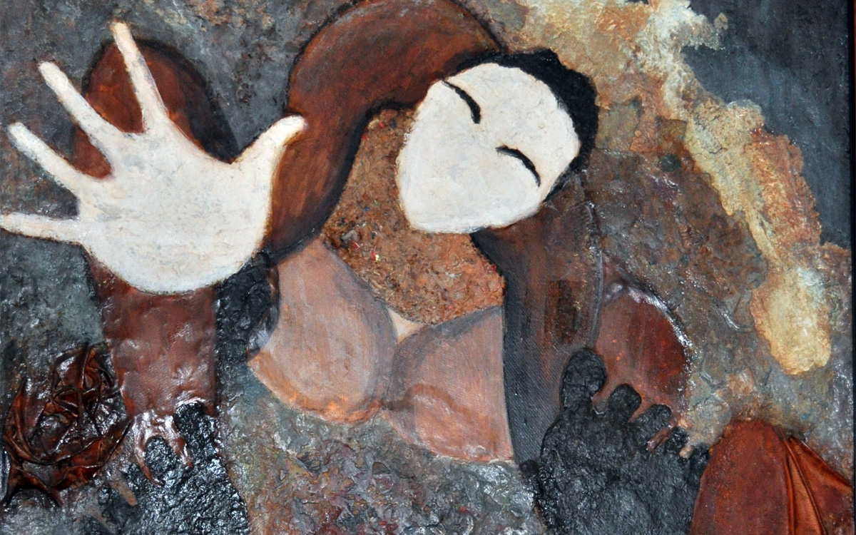 " Je suis une artiste française d'origine indienne par mon père et bretonne par ma mère. Dés l'âge de treize ans, je me suis passionnée pour la peinture car elle représentait pour moi une conversation silencieuse. A travers la symbiose du trait et de la matière extrêmement dense de richesse qu'offre le papier, je souhaite exprimer des sensations, des sentiments, des ambiances... Si mes toiles ont une étroite parenté avec l'univers des expressionnistes tels que Munch, Ensor, Schiele, Kokoschka, elles trouvent un plein aboutissement par le biais du Surréalisme car, tout comme lui, elles s'inspirent de l'exploration du subconscient, du rêve.